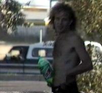 After a quick visit to the dog races, we spotted a topless Leif Garrett doing some Dew. |