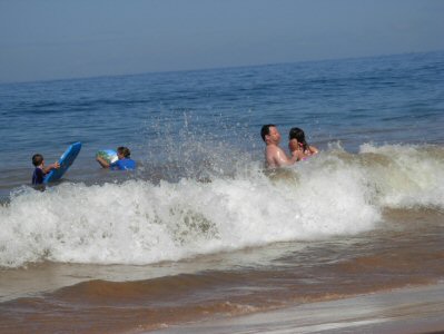 But while Bigs dug in the sand, Dad and Zoe worked the waves.