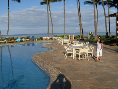Still on LA time, Craig & Zoe get up super early to see the pool.