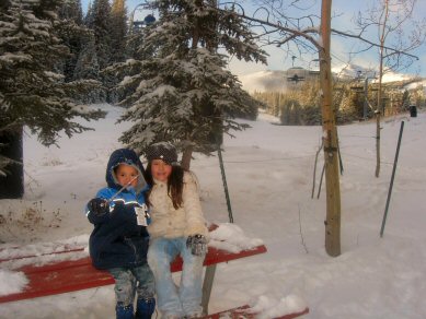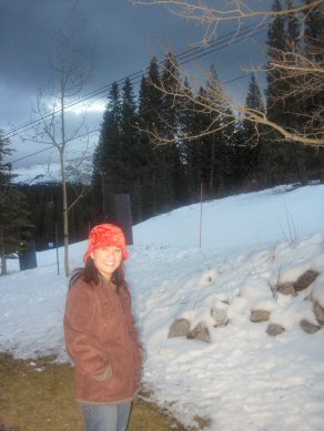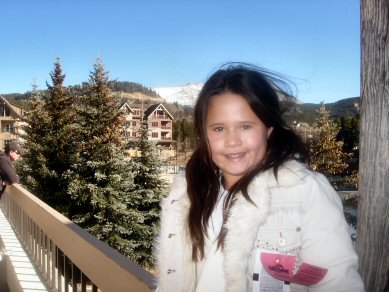 A nice shot of Zoe with the lodges of Breckenridge in back.
