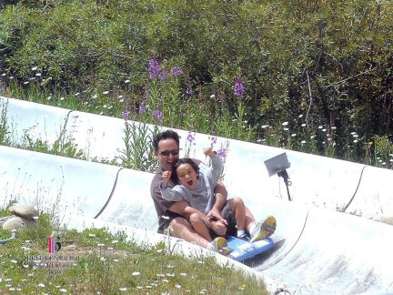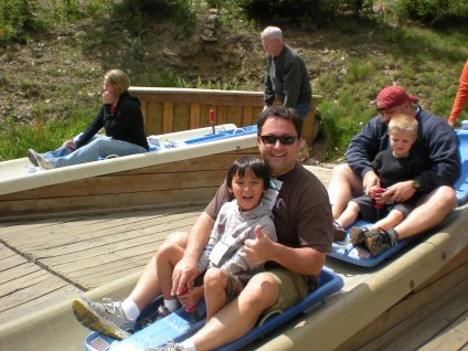 Zoe and Anhdai on the ski lift, making there way up for some sledding.