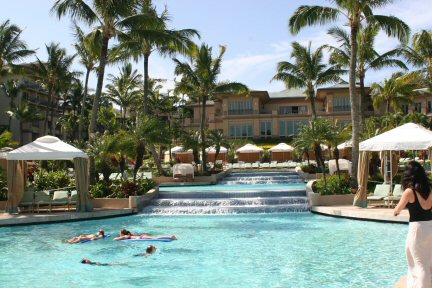 View of the pool area at the center of the Fairmont Kae Lani in Wailea.