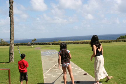 Nothing says Hawaiian fun like a boys vs girls shuffleboard tournament.