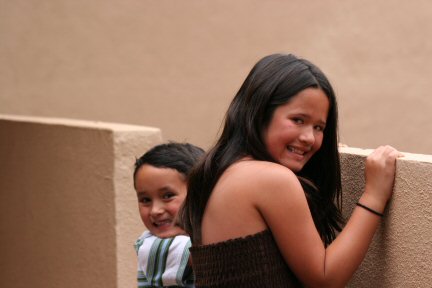 Back at the condo, the kids want to hit the pool before Grandma arrives.
