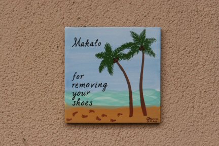 The small tile that greets shoe-wearing visitors outside of the condo.