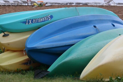 Stacks of kayaks wait for the day's action to kick in at the Kae Lani's beach.