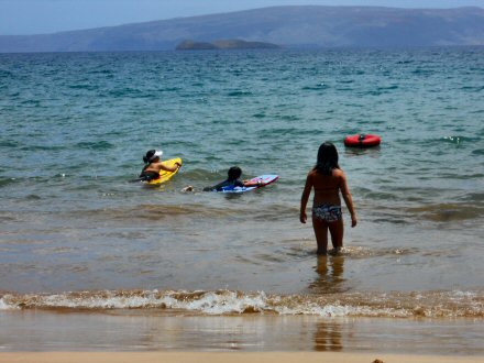 While dad hit his last snorkel run, we carved BD wishes in Makena sand.