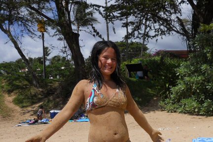 Nothing says Zoe on the beach quite like full-body sand coverage. Yipes.