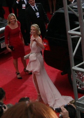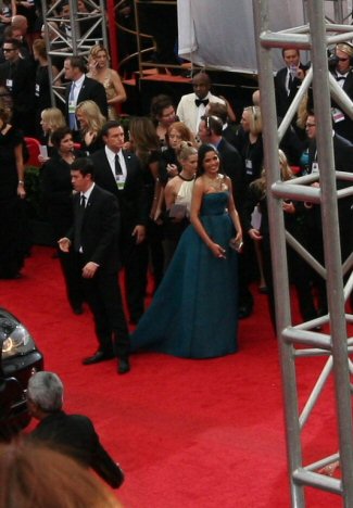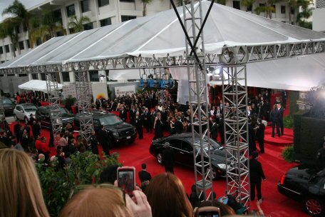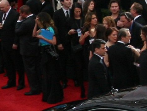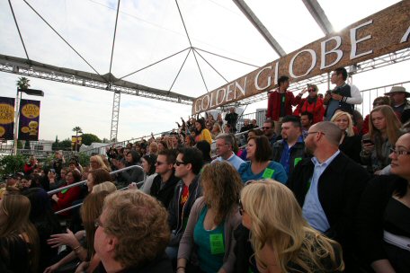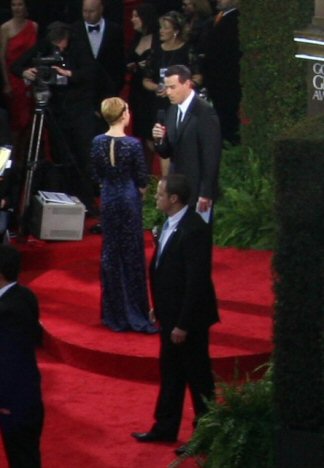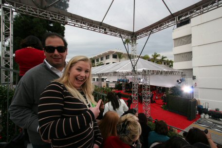 That's the E! broadcasting live from our section & Zoe preening for the cam.