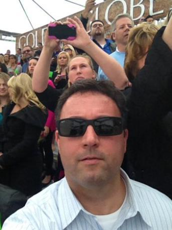 Ed O'Neill between the stage girders.
