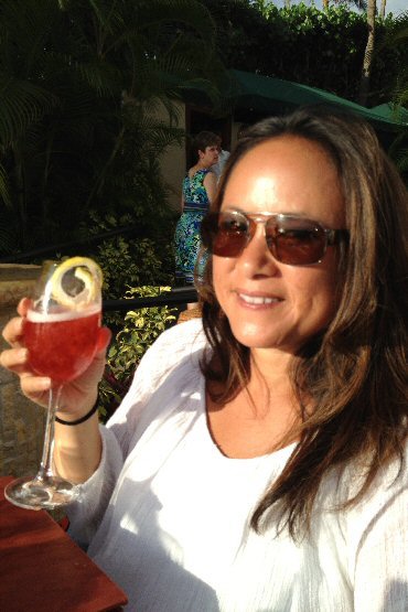 Zoe enjoys a virgin pina colada on the outskirts of The Grotto. So delicious.