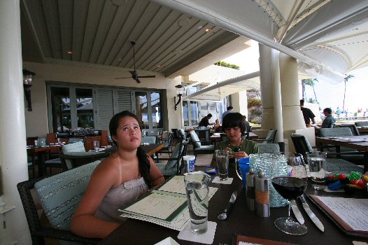 Zoe and Bigs enjoying a nice view from our poolside table.