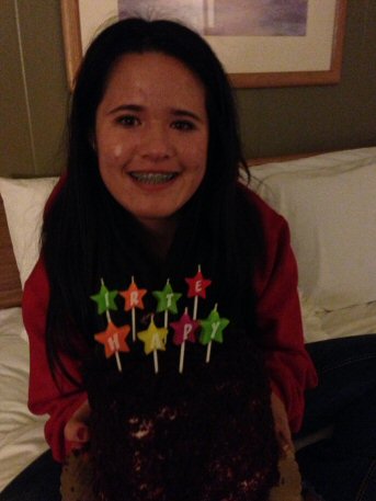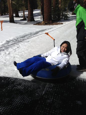 Andrea is looking a bit freaked out on her tube lift.