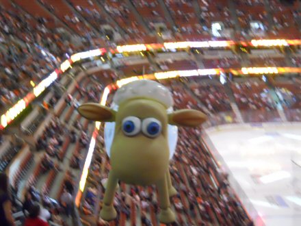 I dig when this cow flies around and drops coupons at the Ducks games.