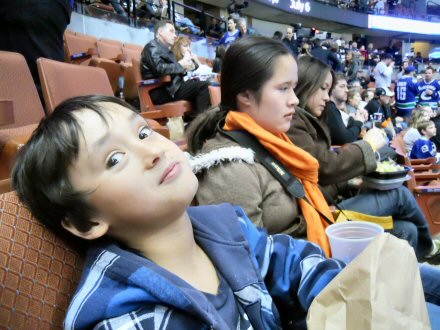 Mom is wondering what "Coconuts Go!" means at the Ducks game.