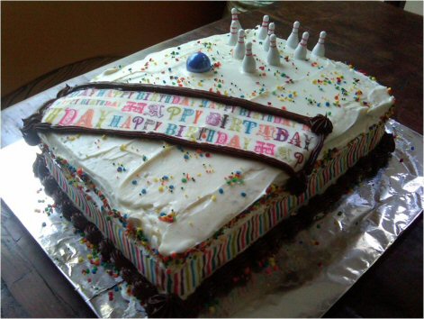 Everyone was cracking up over the awesome bowling cake mom made me.