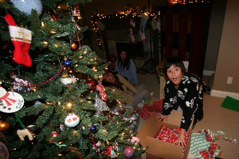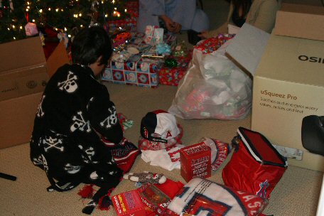 Here I am digging into the Angels Giveaway gift that Dad got for me.