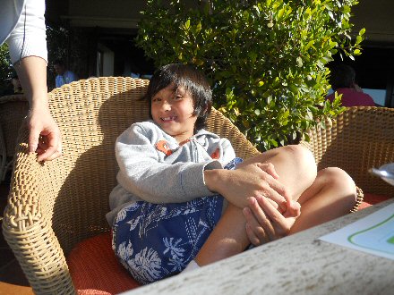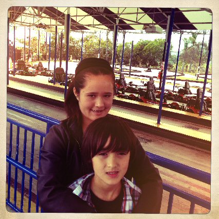 Zoe and me in line for the go karts at Palace Park in Irvine.