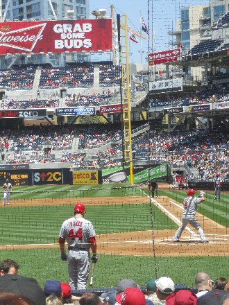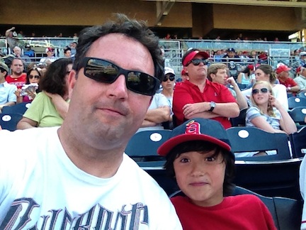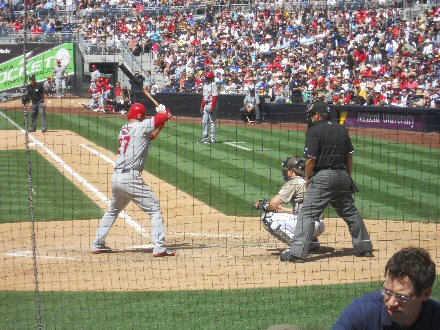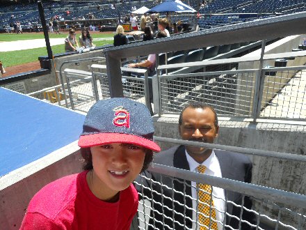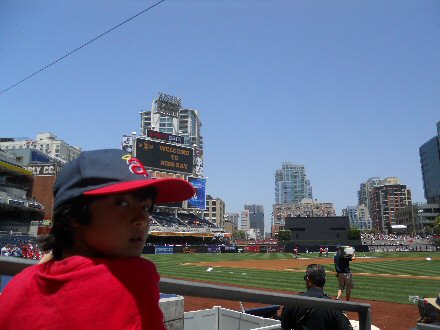 Dad and I went to San Diego to catch the Angels. Hey, that's Jose Mota.