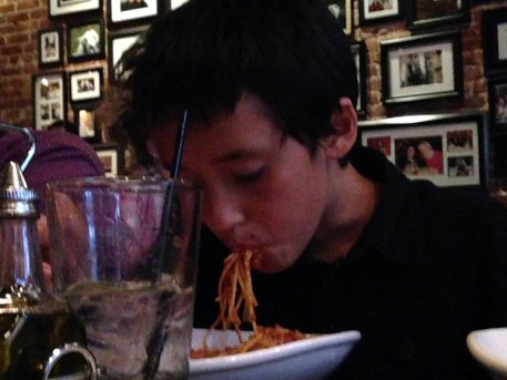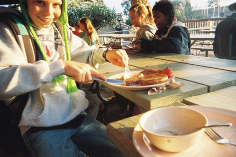 Here's my friend Dylan getting ready to dig in for some breakfast.