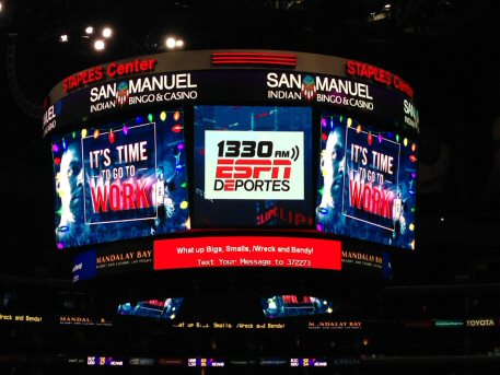 Check out the texted-in message on the scoreboard. We're so cool.