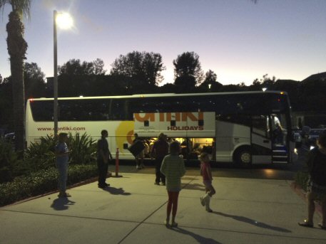 The bus arrives back at school after the 7th grade trip to Yosemite.