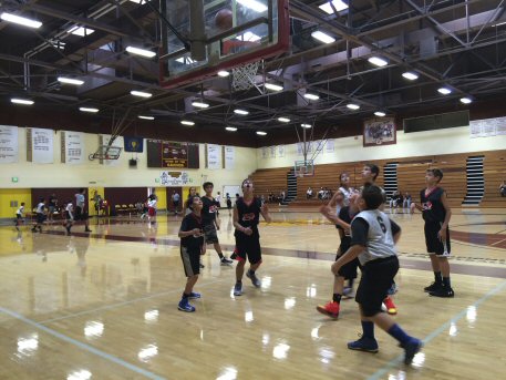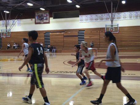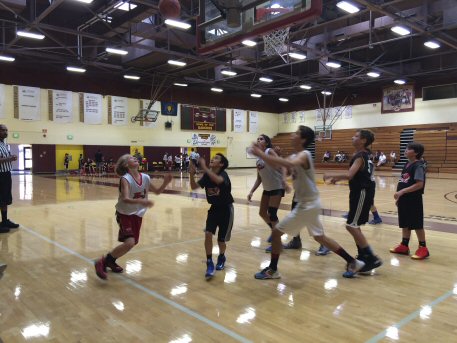 Boxing out on some over-grown 8th graders in a hoops league I joined.