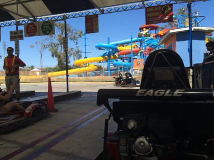 Sitting in the go-kart queue at Boomers--getting ready to rock.
