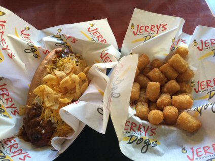 Dad's hot dog at Jerry's Dogs in Irvine. And they have tator tots!!