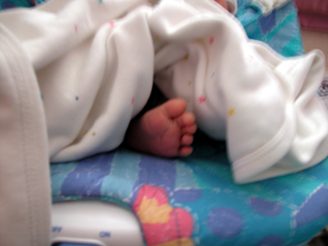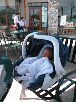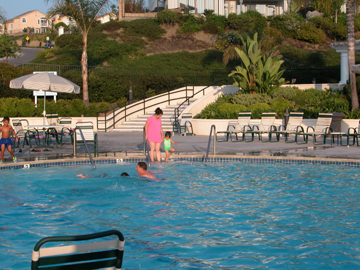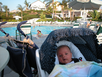 neighborhood pool. Here are mom and Zobo dipping their toes