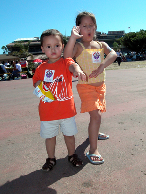 | Here I am with my friend, Max Musto from down the street. His sister Isabella goes to school with Zoe. We had fun throwing puff balls and chasing each other around the place. |