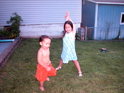 | Great Gramma Crissy also has something else that we don't have much of in California--a yard. YIPEE!! Zoe and I chased each other around the yard and pretended to be ninja fighters. |