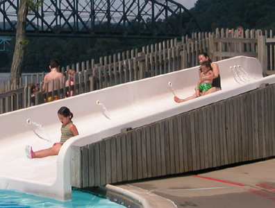 | We had to stay in Pittsburgh for a couple of days so that Dad could have a business meeting. So we took one day to visit the local water park. That's Zoe in front and me & mom in back. |