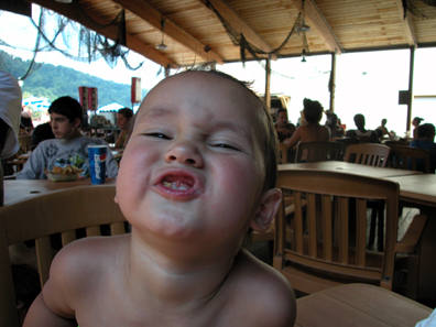 | I bid you farewell from the waterpark in Pittsburgh with a funny face and some food in my mouth. A great big hug goes out to my Great Gramma, I can't wait to see you again. And don't lose that boom box. I love you. -Bigs |