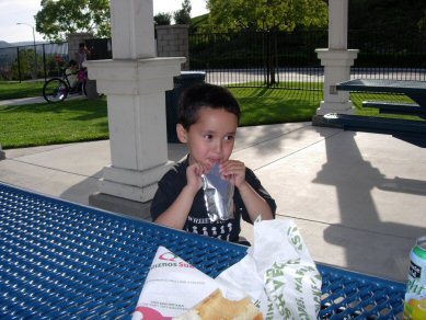 picnic at our neighborhood park. I dig Quizno's sandwiches.