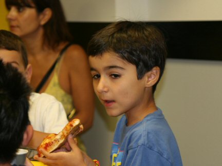 And here's my buddy Nabil digging into a slice of pepperoni pizza.