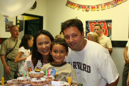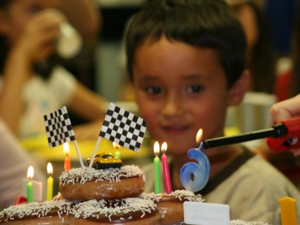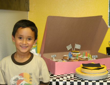 My 6th birthday had a racing theme. Here I am with my donut cake.