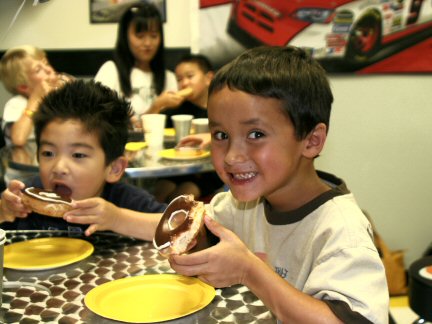 OK, enough with this racing, let's eat some pizza and donuts!!