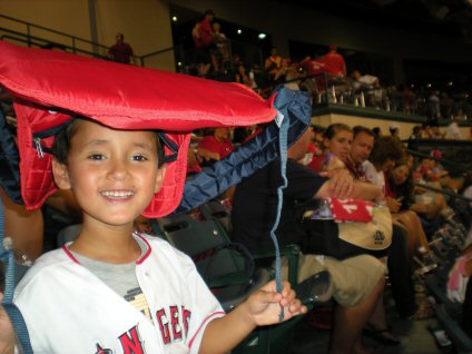I got a free catcher's gear back-pack that night. I wore it as a hat.