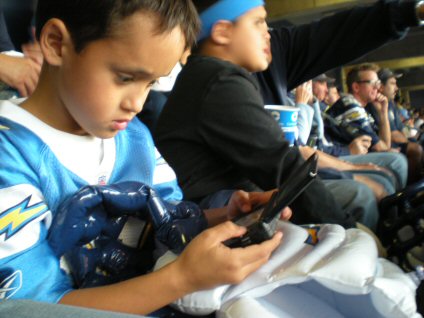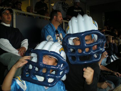 Our Dads bought us these goofy helmets to wear during the game.