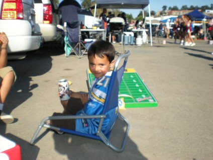 Hanging out with Dad, Milo and Cade doing some serious tailgating.
