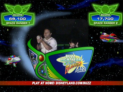 Here's a shot of me and Dad inside Disneyland's Buzz Lightyear ride.