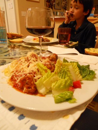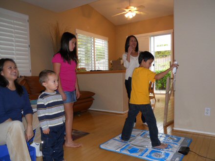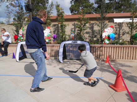 He shoot! He scores! Hanging out with dad at the Sea Country bash.