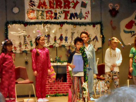 Performing like a rock star in my PJ's at the Holiday Pageant.