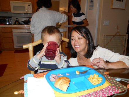 Brennan and Anhthy enjoying the tasty food at our holiday party.