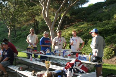 clean Sloshball camaraderie. Flip, Rockin' and Mac chat it up.