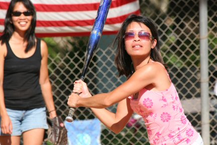 Cassie zeros in on the oncoming pitch before launching a homer.