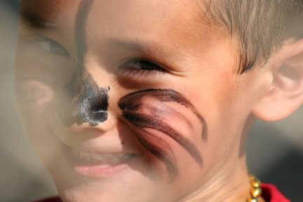 Ry sports some tiger face painting courtesy of his sister's artistry.