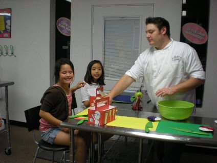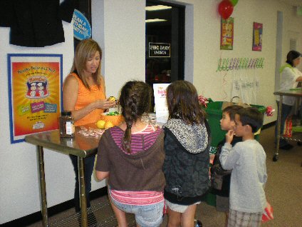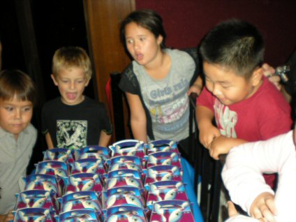 Checking out the goodie bags at Josh Kahr's birthday bowl-a-thon.