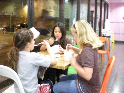 Enjoying some yogurt and talking shop with the ladies.